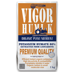 VIGOR STIMULATOR is a homogeneous powder mixture of Humic acid and Seaweed and is designed to support the growth of field crops, fruit and ornamental plants during the entire vegetation ranging from support for the formation of roots, growth, leaf area through the main preiods of growth until flowering and fruit growth