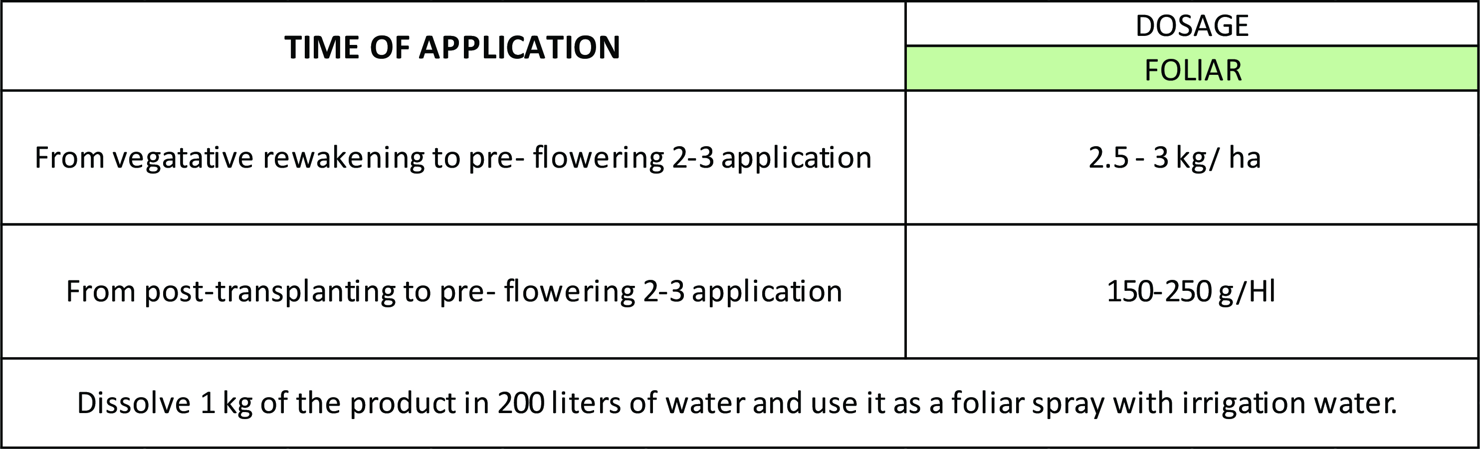 DOSAGES ARE CALCULATED FOR NORMAL WATER DISTRIBUTIONS VOLUMES. Please consult the technical services for application advice in specific crop and pedoclimate conditions. 12-48-8 ANTIBACTERIAL can be mixed with all common formulation; except with mineral oils, emulsions and Bordeaux mixture. If you want to use 12-48-8 ANTIBACTERIAL in a mixture with other products, tests of compatibility on small area are recommended. FIMACO is only liable for the composition of the product and assumes no responsibility whatsoever for damages caused by wrong/improper use of this product. Keep away from flames in a cool, well-ventilated place. Avoid prolonged exposure to low temperatures. Check container periodically. In case of accidental spill contain the leak, avoid water contamination and whenever necessary, dispose according to the laws in force.